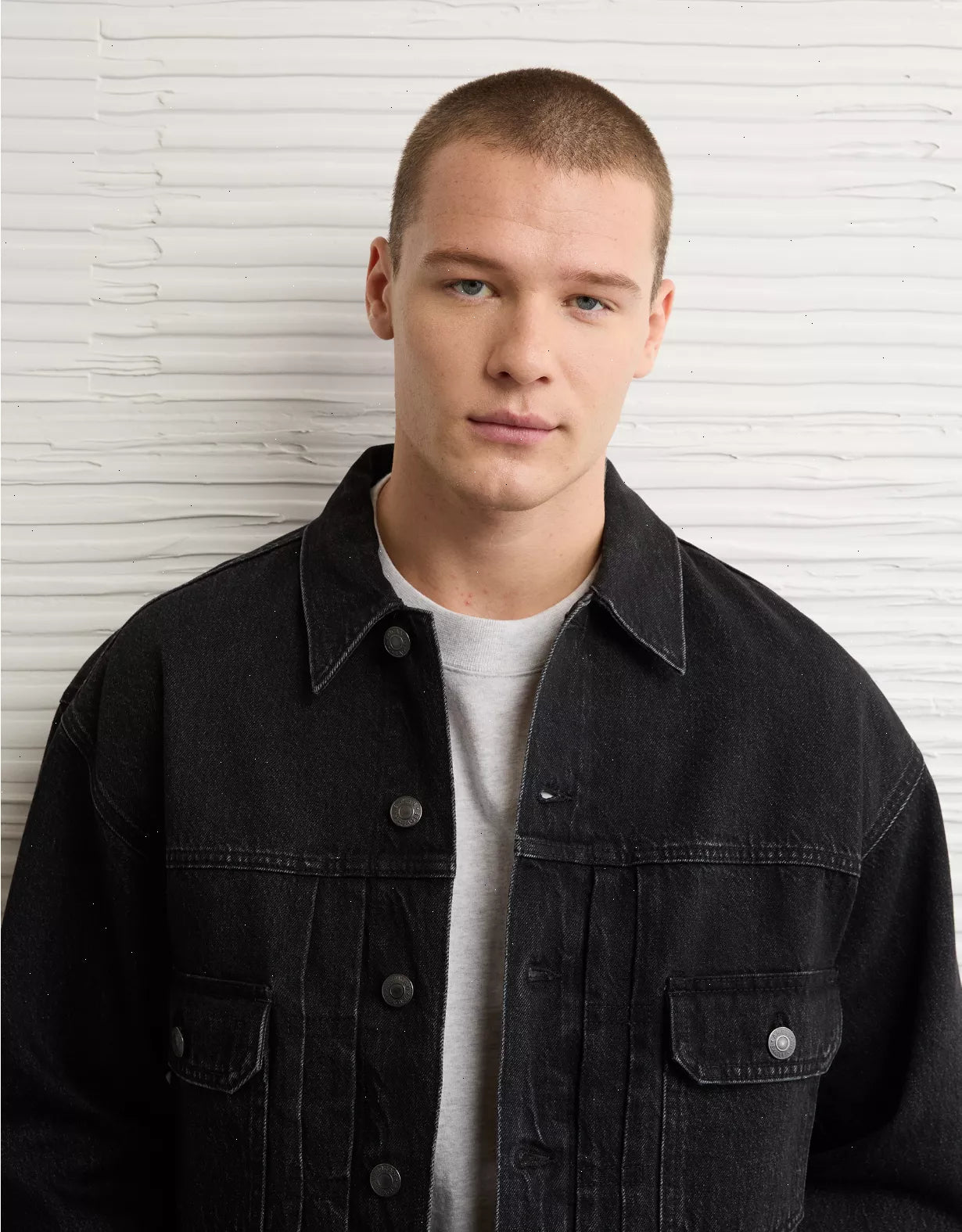 Inspired by authentic vintage jackets, this jean jacket features distressed denim fades and an oversized fit for vintage attitude from the start.