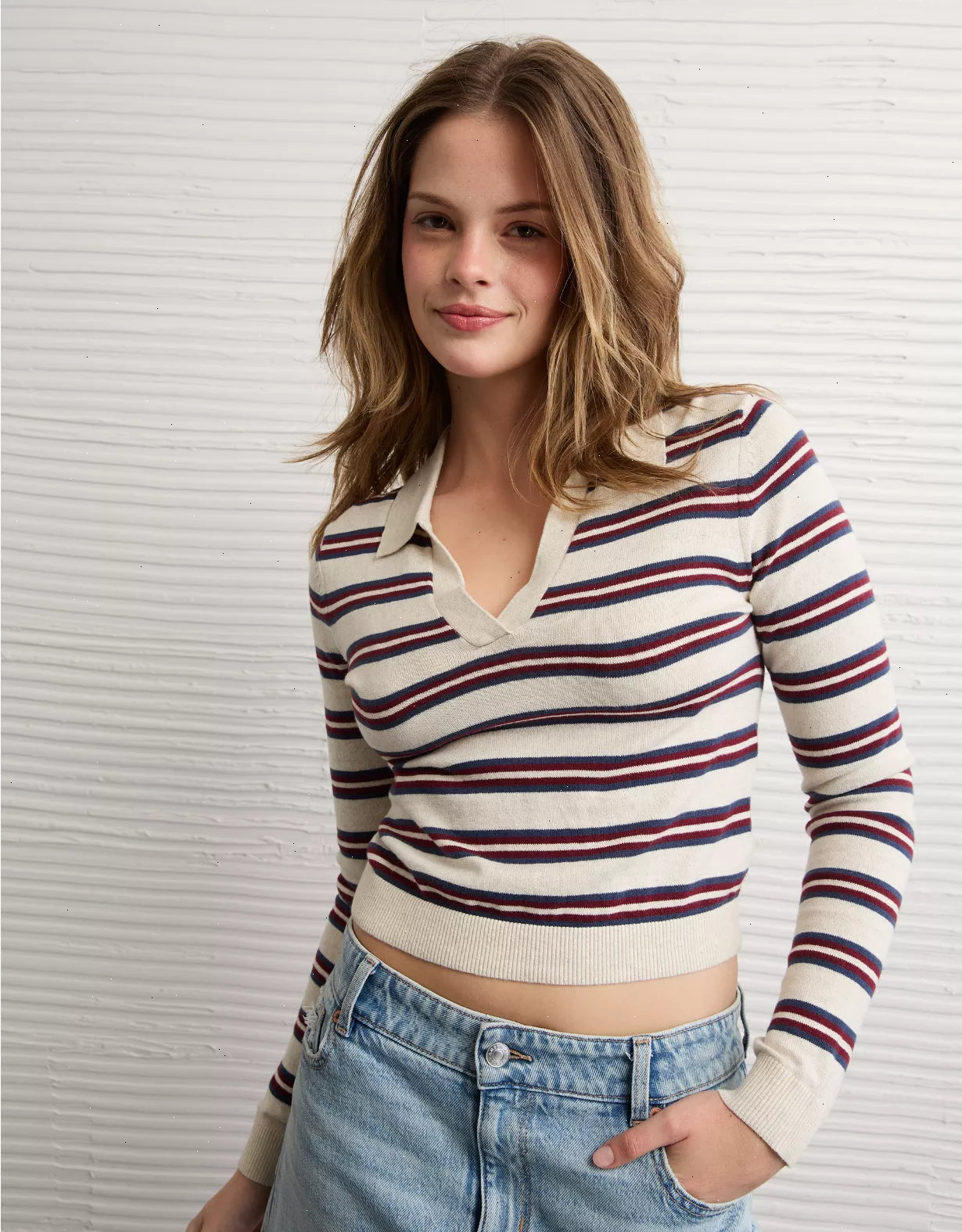 Cute and trendy! This polo sweater fits like a dream and pairs perfectly with your fave high-waisted denim.
