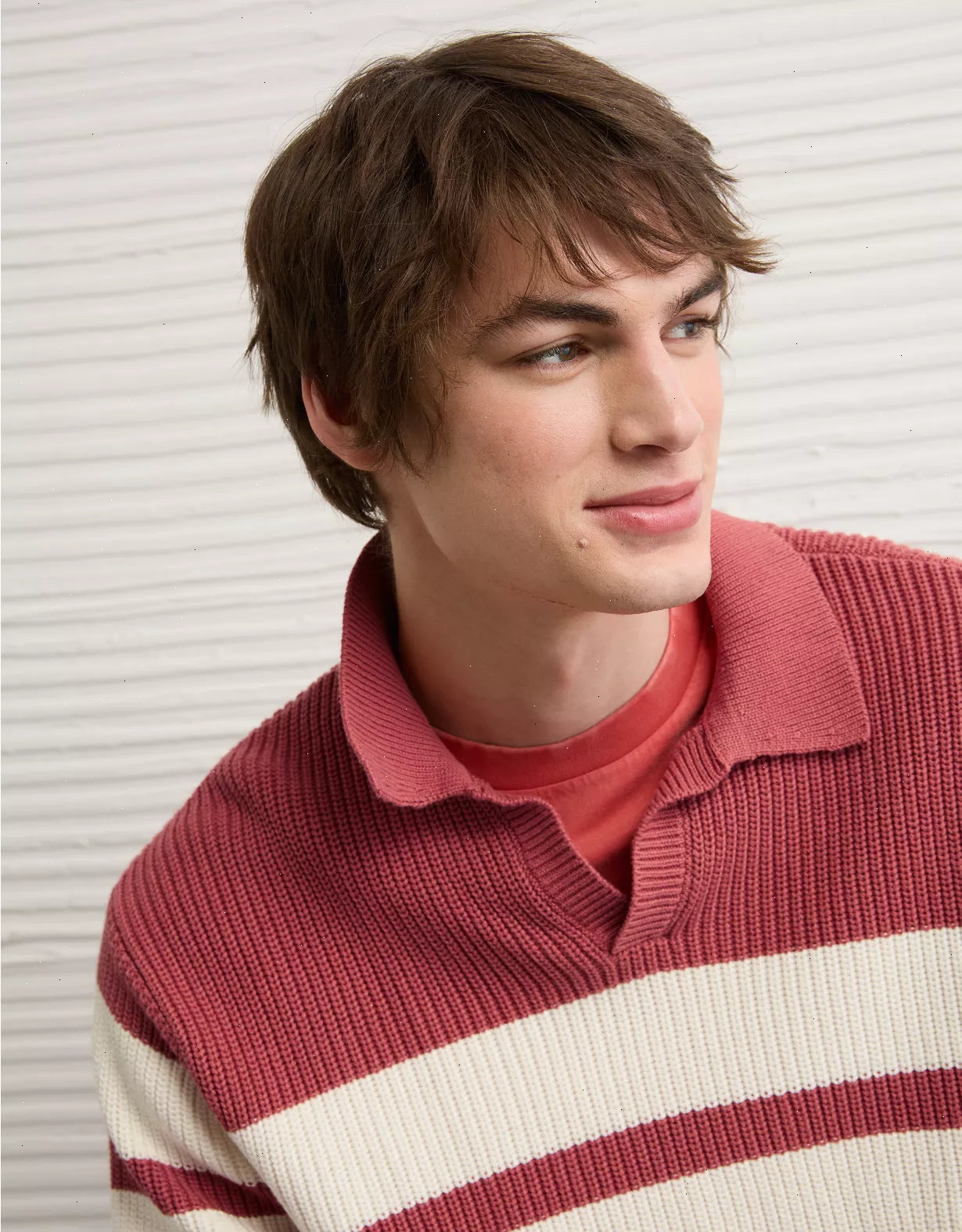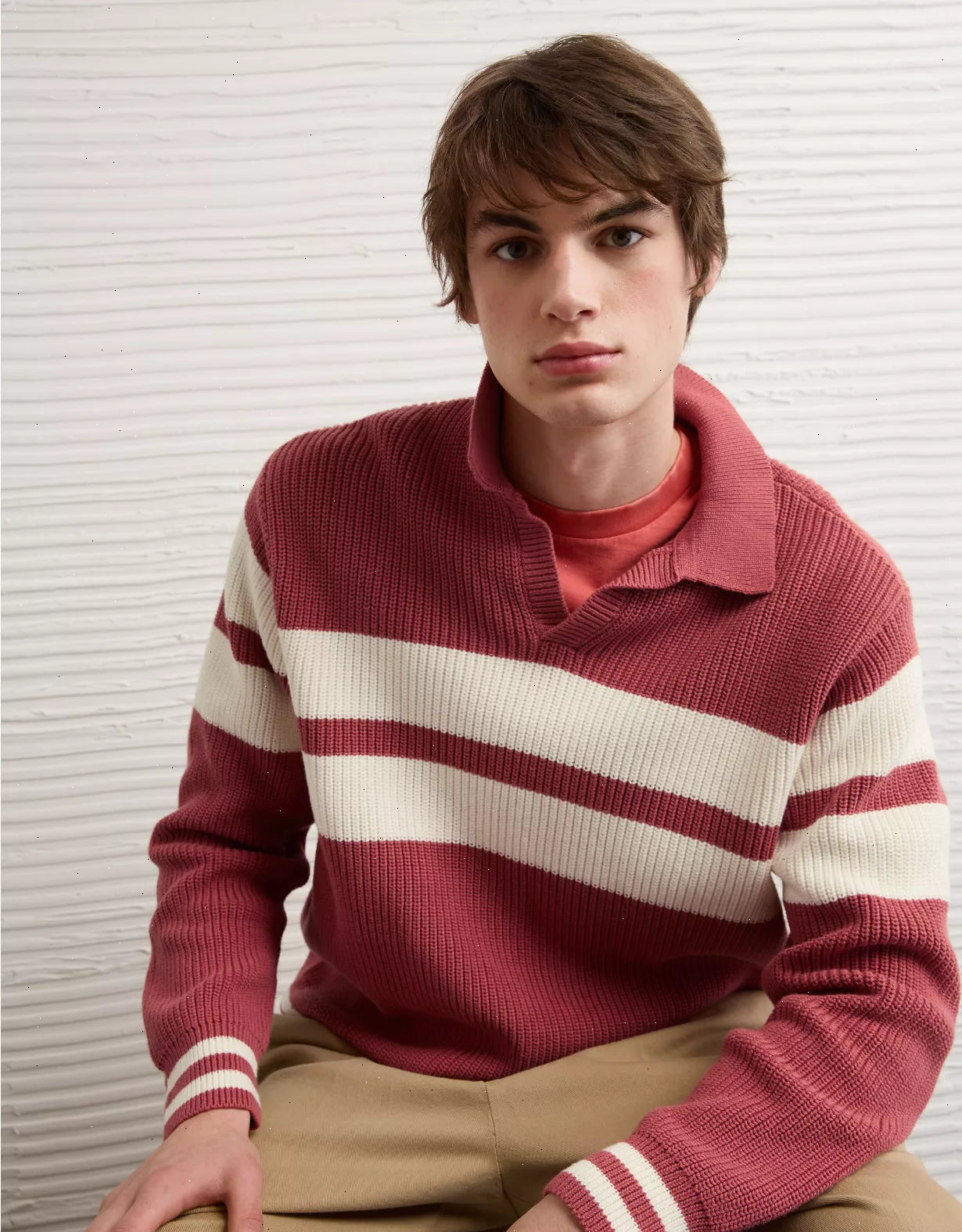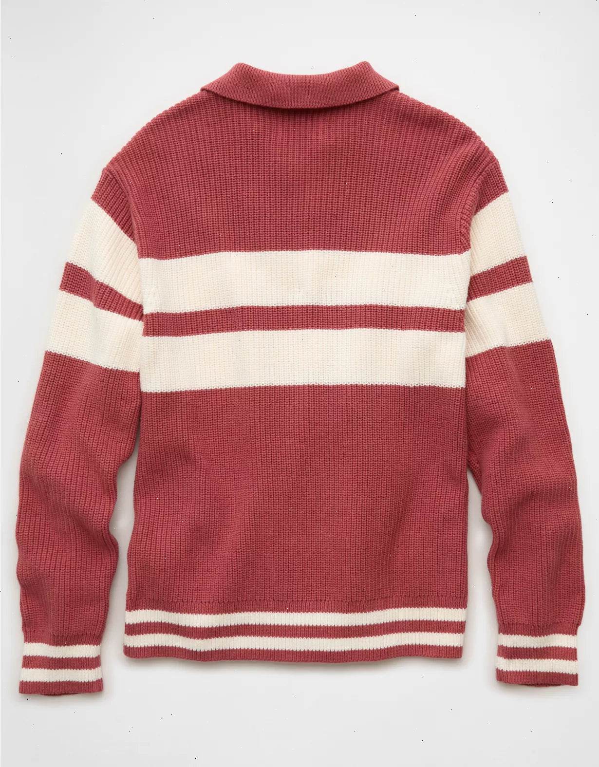 This rugby sweater adds a preppy touch to any outfit. Wear it with a pair of faded jeans for a vintage-inspired look. Features a johnny collar for even more classic vibes.