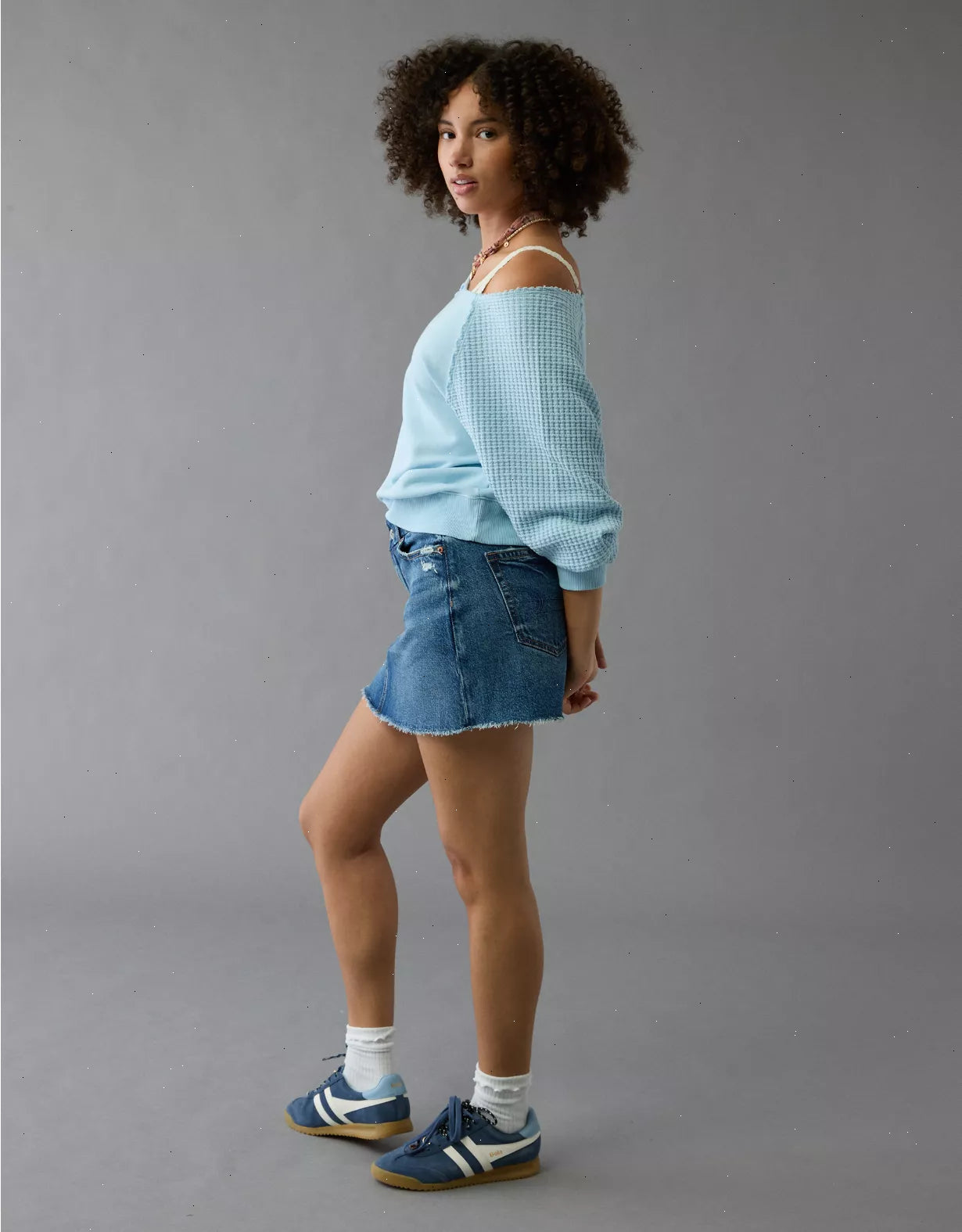 This denim mini skirt is perfect for an it girl vibe. Made for curves with extra room in the hip & thigh.